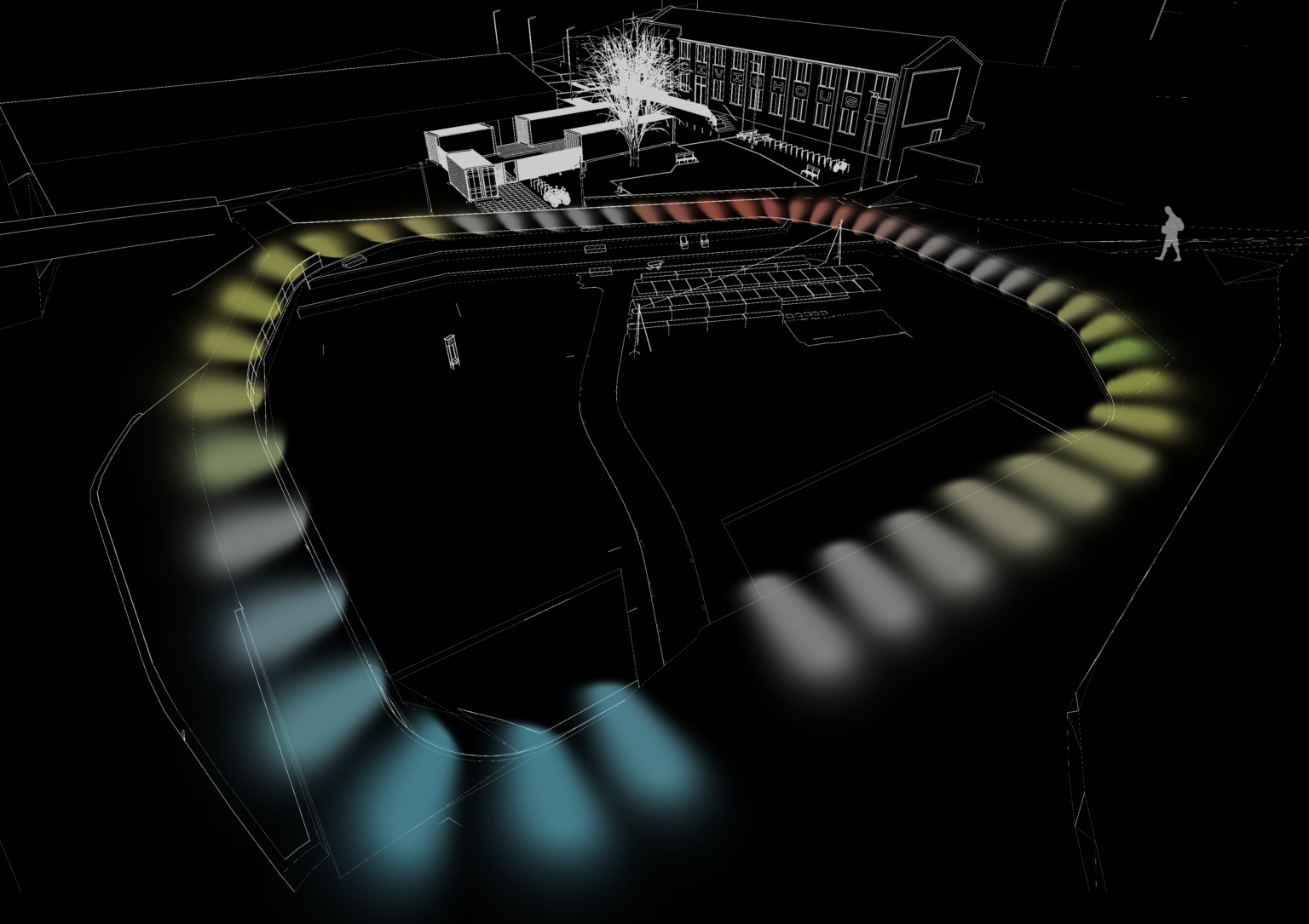 Using creative coding to create responsive lighting sequences we will explore ways in which the space can be transformed into being a place of recreation and sanctuary once again. We will aim to improve the area of public realm, reinforcing the existing pedestrian and cycle links and, in doing so, have a positive impact on many journeys across the city.
